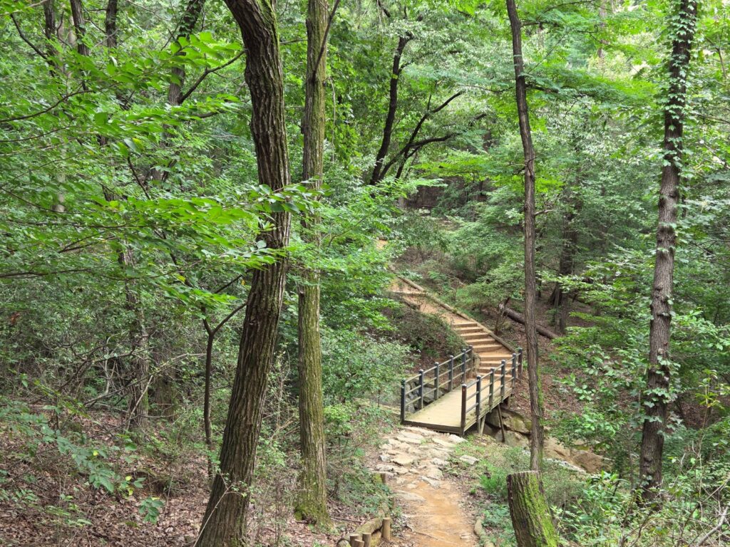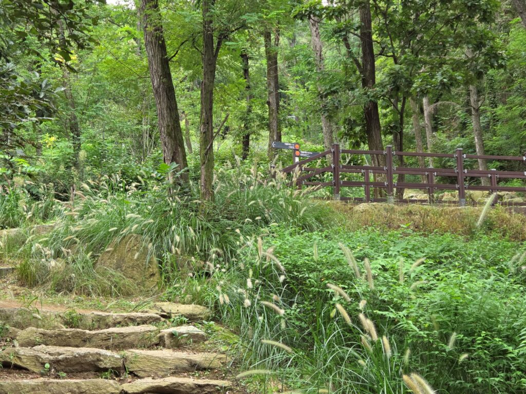 다만 8코스에 비해 체력적인 부담이 있는 것은 사실입니다. 총 10.7km의 거리 중 약 8km 구간이 산길로 이루어져 있어, 산악 트레킹의 성격이 강합니다. 코스 초반 대모산 입구의 계단이 다소 가파르게 느껴질 수 있으나, 전체적으로 급경사나 험한 길은 없습니다.