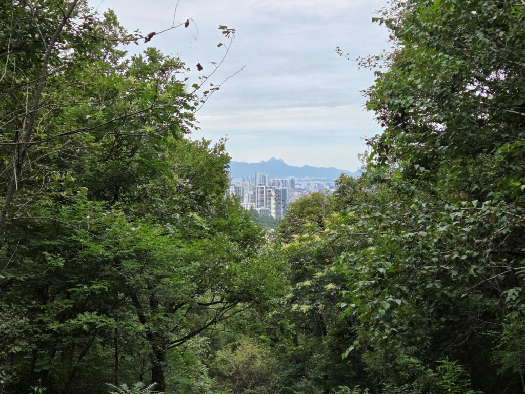 코스 초반부의 주요 산으로, 수서역에서 시작되는 등산로를 따라 오르게 됩니다. 깊고 호젓한 참나무 숲길이 특징이며, 도심 속에서 산림욕을 체험할 수 있는 구간입니다. 계단 등산로를 천천히 올라서면 걷기 좋은 흙길이 시작됩니다.