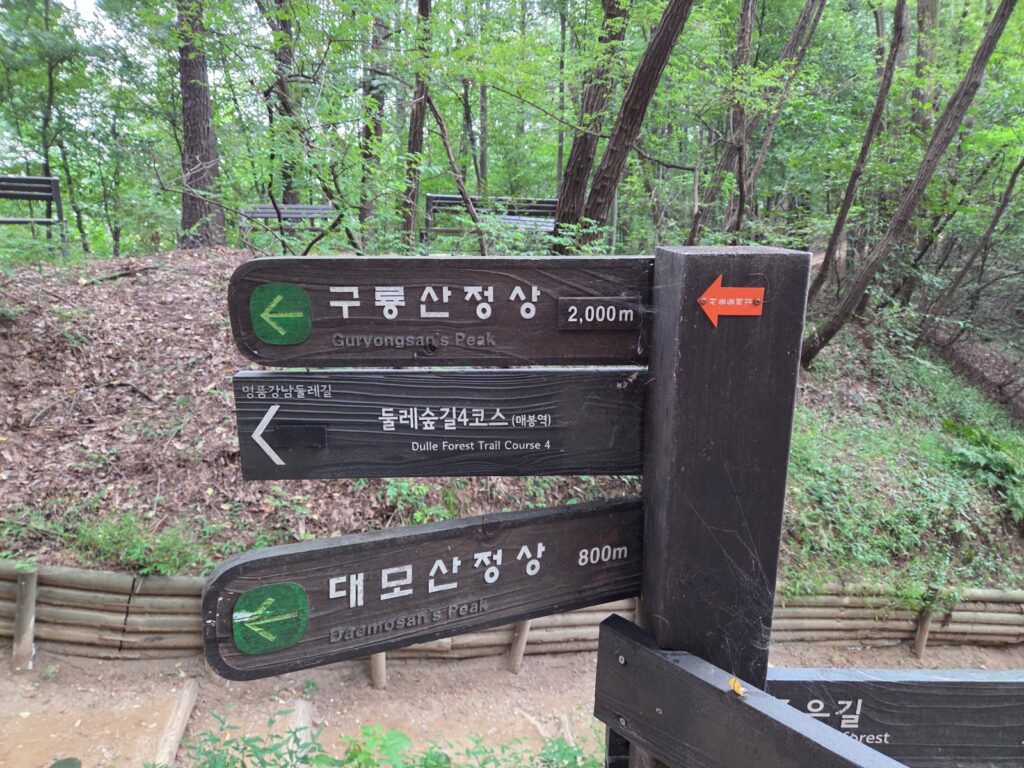 오히려 등산로가 잘 정비되어 있어 무리 없이 도전할 수 있고 대모산과 구룡산의 정상을 거치지 않고 능선을 따라 걷는 길이므로, 꾸준히 걷는다면 누구나 완주 가능합니다.