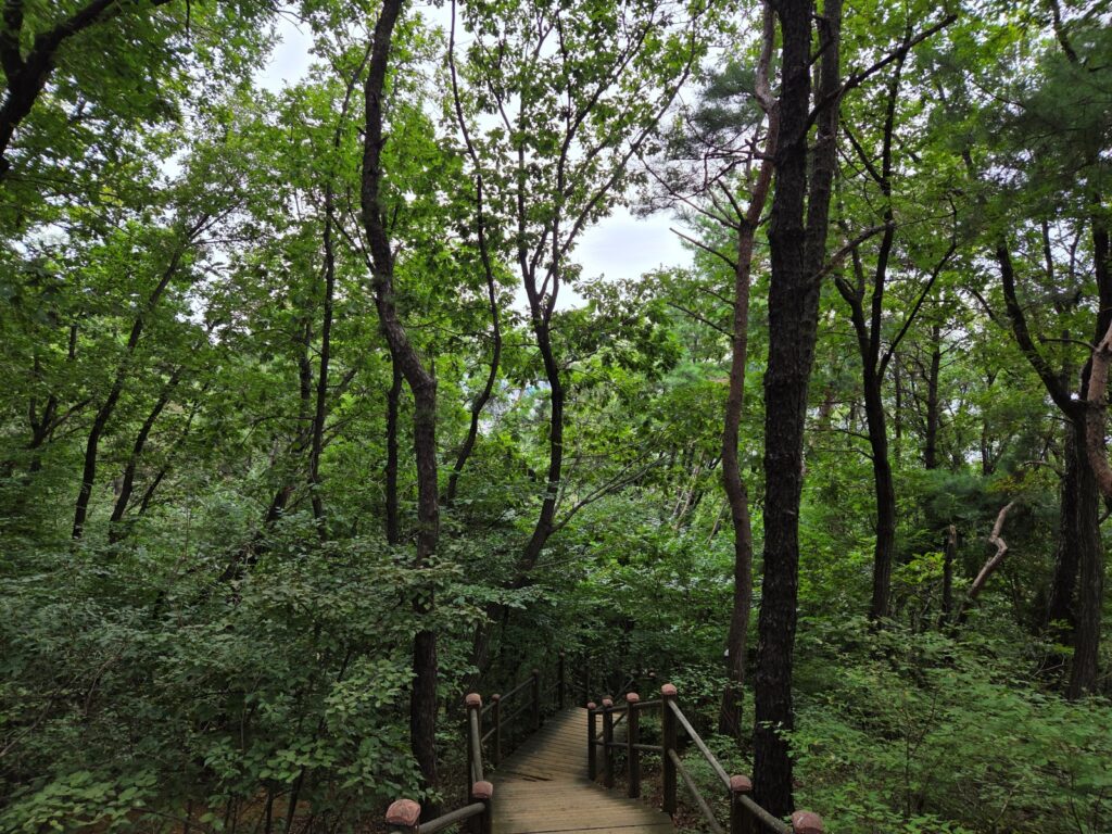 코스의 가장 큰 매력은 서울 한복판에서 만나는 울창한 자연입니다. 대모산과 구룡산의 숲길을 걸으며 도시의 번잡함에서 벗어나 온전한 휴식을 취할 수 있습니다.