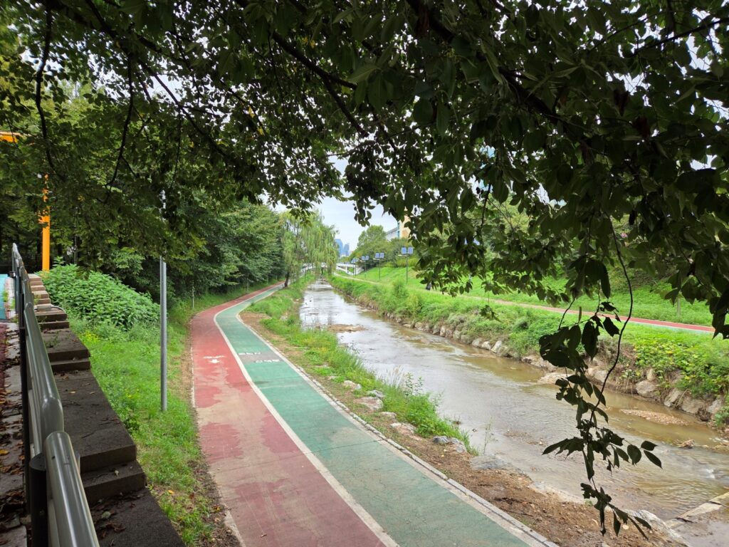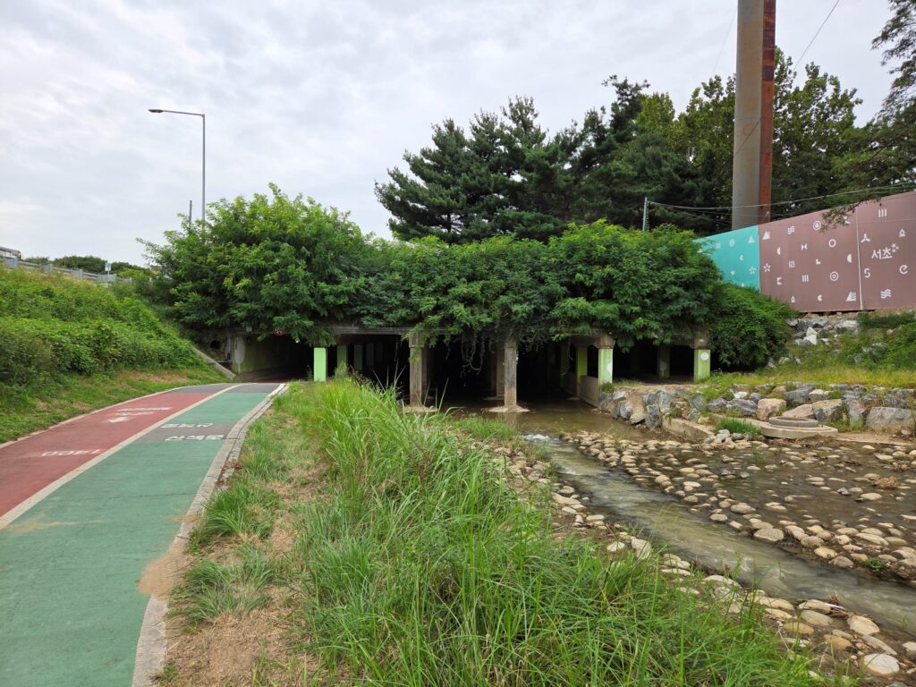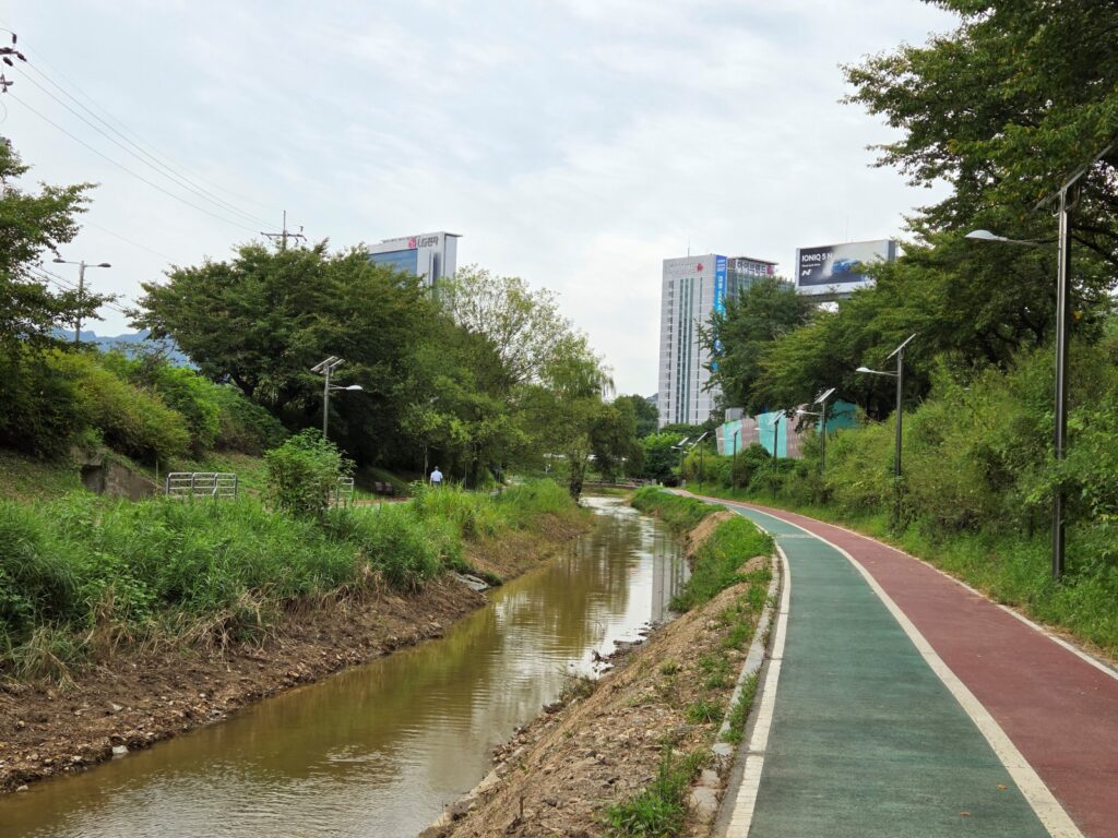 구룡산에서 내려와 만나는 하천길로, 산악 구간 후 평탄한 길을 길으며 호흡을 고를 수 있는 구간입니다. 도시 하천의 정취를 느끼며 마지막 목적지를 향해 여유롭게 걸을 수 있습니다.