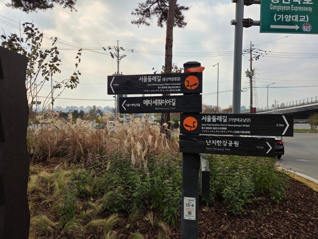 서울둘레길 15코스는 14코스의 종점인 가양역(가양대교 남단)에서 시작해 한강생태습지공원, 노을공원, 하늘공원, 문화비축기지, 불광천을 거쳐 증산역까지 이어지는 약 7.7km의 트레킹 코스입니다. ‘복원된 자연길’이라는 테마 아래, 서울 서북권의 대표적인 생태공원과 한강.월드컵공원을 연결하는 도심 속 산책로입니다.