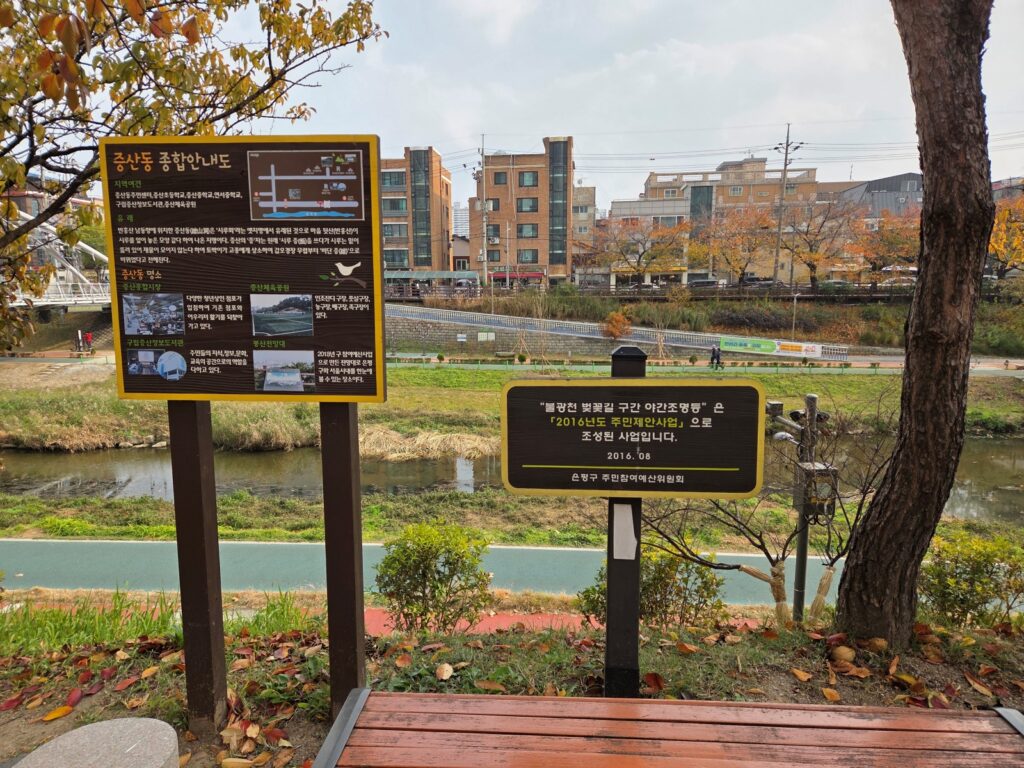 마지막 구간은 불광천을 따라 증산역 쪽으로 이어지며, 천변 데크와 산책로를 느긋하게 걸을 수 있습니다.