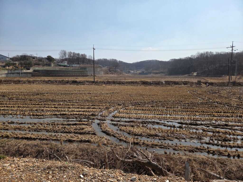 코스 중반부터는 농로와 마을길이 이어집니다. 논과 밭이 펼쳐지는 김포 평야 풍경 덕분에 길 분위기가 한층 조용해집니다. 계절에 따라 풍경도 크게 달라집니다.