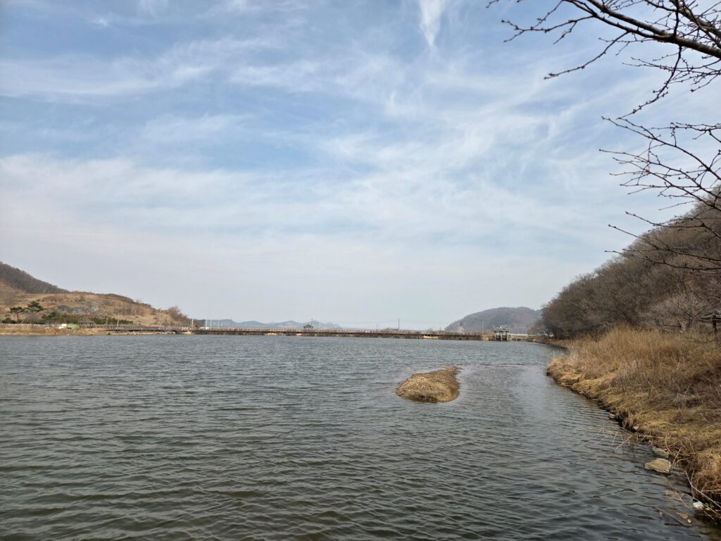 문수산을 내려와 산길 구간을 지나면 길의 분위기가 다시 바뀝니다. 이후에는 조용한 시골 마을길과 농로가 이어지며,0 코스 중간에는 조강저수지 주변 길도 지나게 됩니다. 저수지와 넓은 들판이 함께 펼쳐지는 구간이라 시야가 탁 트여 걷는 느낌이 한층 시원해집니다.