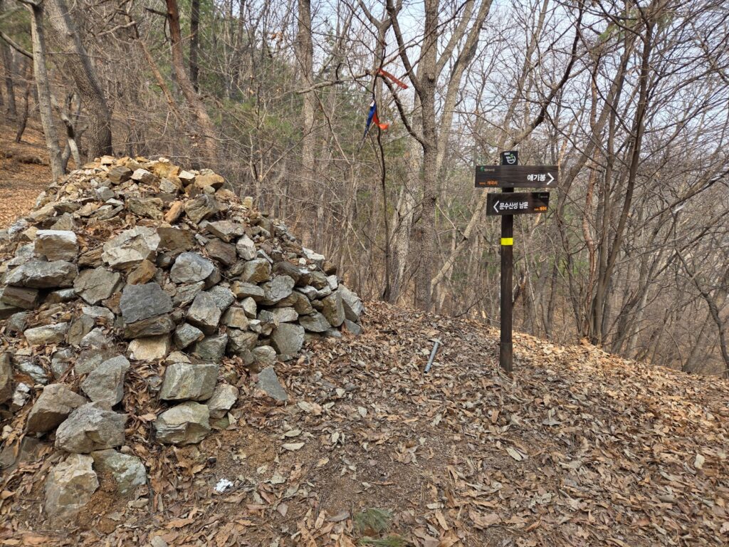 출발 지점인 문수산성 입구에서 길을 시작하면 곧바로 문수산 정상 방향으로 이어지는 숲길이 나타납니다. 코스의 시작부터 계속되는 오르막길 때문에 공식 난이도는 ‘어려움’으로 표시되어 있지만, 실제로는 초반 약 2km 정도만 오르막이고 이후에는 내리막과 평지 구간이 이어져 크게 힘들지는 않습니다.