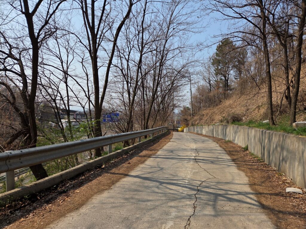 검단사로 이어지는 초입 구간으로, 숲길 형태의 조용한 길입니다. 비교적 한적한 분위기 속에서 천천히 걸으며 주변 자연을 느끼기 좋은 구간입니다.