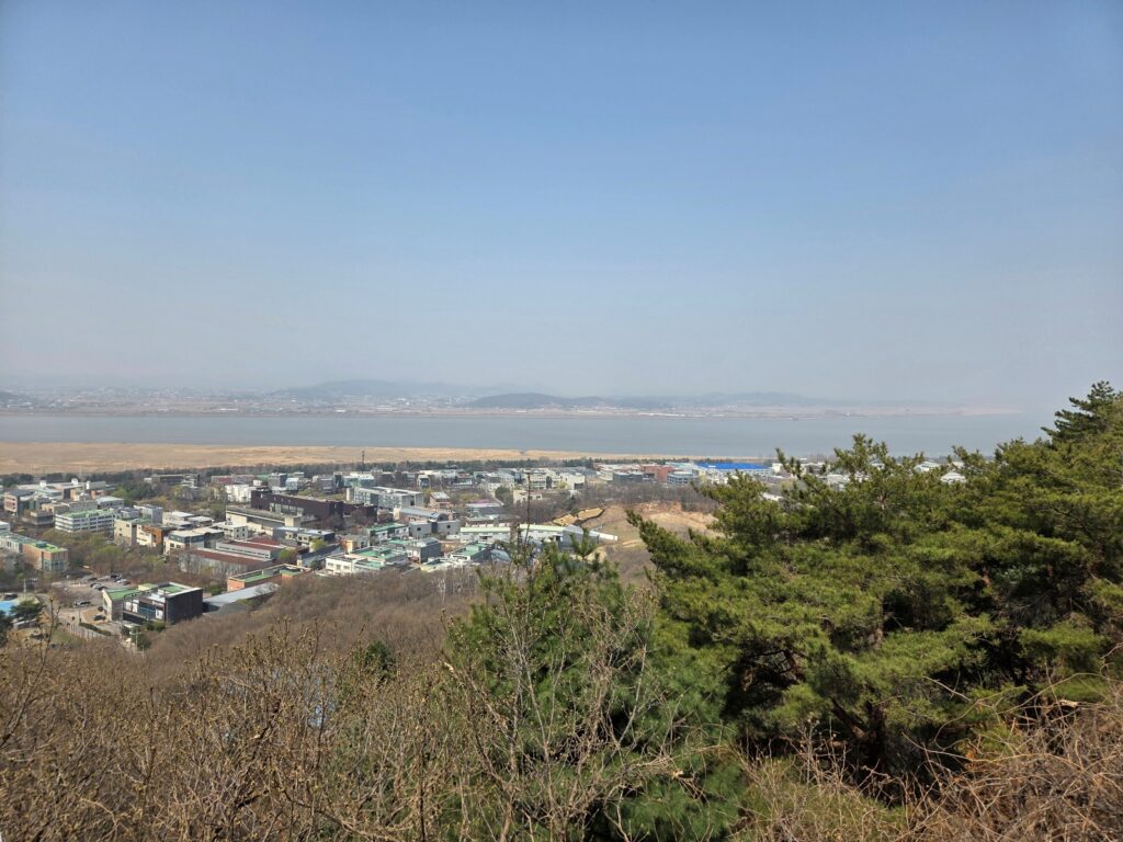 심학산 둘레길은 중간에 만나는 낙조전망대와 파주출판도시 방향으로 내려가는 길목의 배밭정자처럼 주변 풍경을 한눈에 볼 수 있는 지점들이 있어, 둘레길을 걷는 사람들이 많은 편입니다. 그리고 둘레길을 내려오면 작은 카페들이 모여 있는 카페 거리도 있어 잠시 쉬어가기에도 좋습니다.