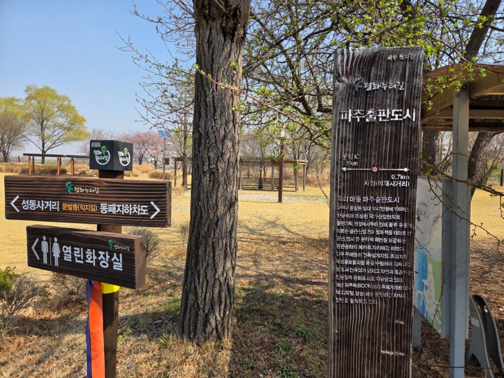▣ 편의시설: 시작점 동패지하차도에서 심학산 둘레길 시작전에 화장실이 있고, 파주출판도시 공원에도 화장실이 있습니다. 근처에 편의점등은 없으니 물은 미리 준비하시는게 좋습니다.