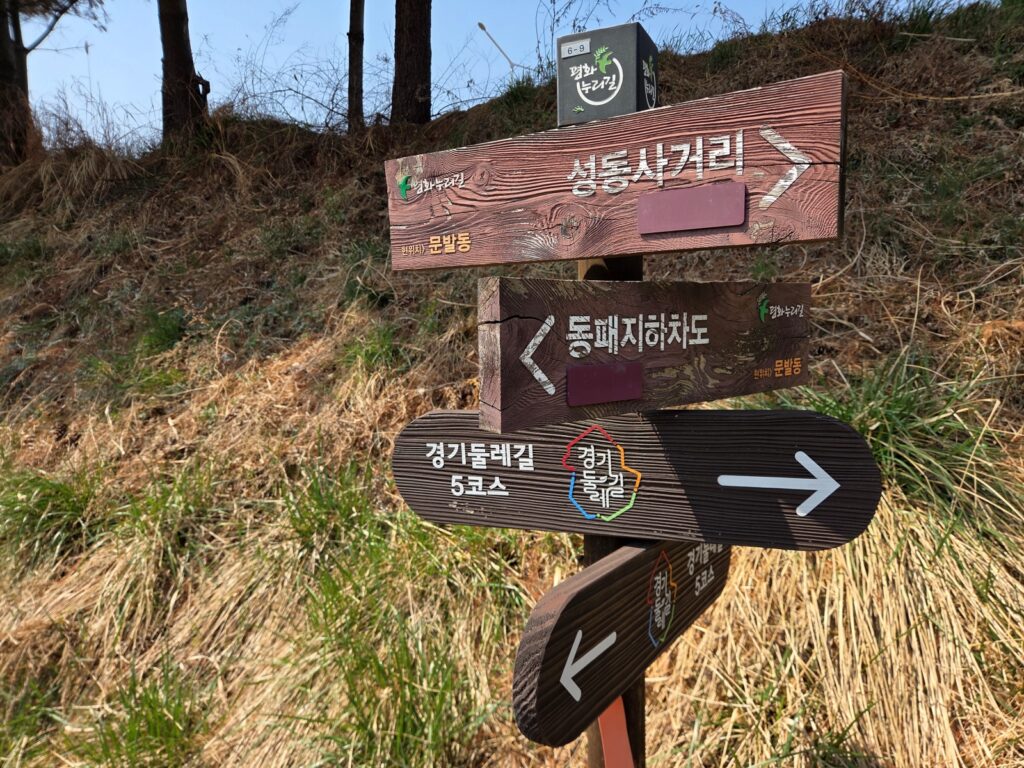 경기둘레길 파주 5코스는 동패지하차도에서 출발해 성동사거리까지 이어지는 약 16km의 코스로, 파주 구간이 시작되는 길입니다. 출발점인 동패지하차도를 지나 심학산 둘레길로 들어서면 숲 분위기가 시작되며, 본격적인 파주 구간의 시작입니다.