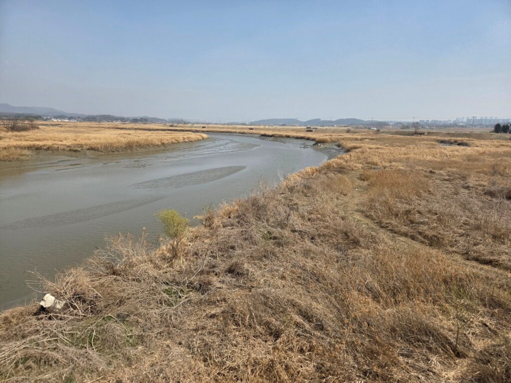 파주출판도시는 조용하고 정돈된 분위기가 인상적이며, 이후 자유로 옆 자전거길을 따라 공릉천으로 이어집니다. 이 구간은 앞선 숲길에 비해 다소 단조롭게 느껴 질 수 있지만, 송촌교를 건너며 만나는 갈대와 수변 풍경은 잠시 걸음을 멈추고 주변을 바라보게 만드는 지점입니다.