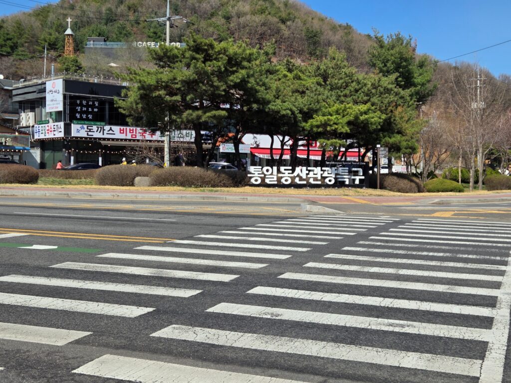주요 도로가 만나는 교차 지점으로 코스의 마무리 지점입니다. 주변에 버스 정류장이 있어 대중교통으로 이동하기 편리한 위치입니다.