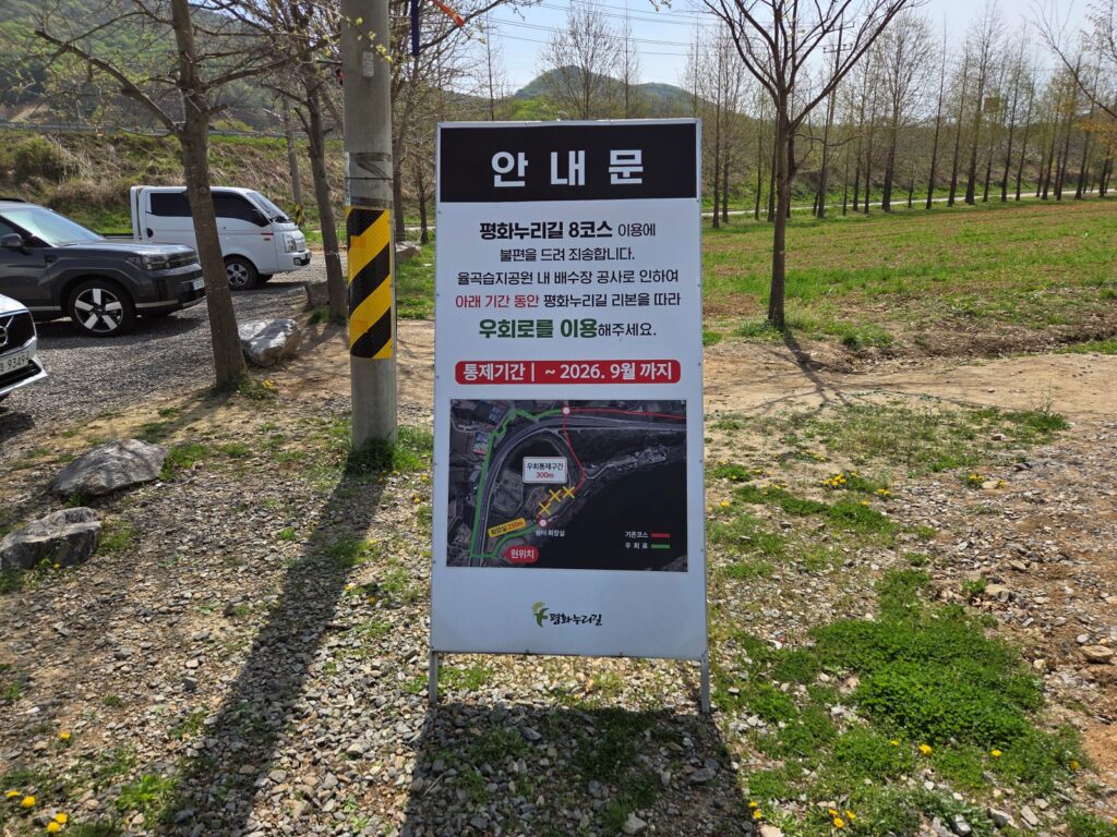 마을길 구간을 대표하는 지점입니다. 8코스가 숲길이나 강변길만 이어지는 길이 아니라, 농경지와 마을 풍경이 함께 어우러진 코스라는 점을 보여줍니다.